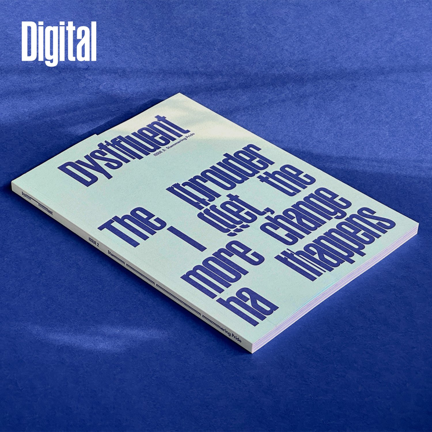Dysfluent Issue 2 is a 110+ page compilation of interviews and visual artwork celebrating and challenging stammering pride. Each interview is set in Dysfluent Mono, a font representing the person’s stammer.